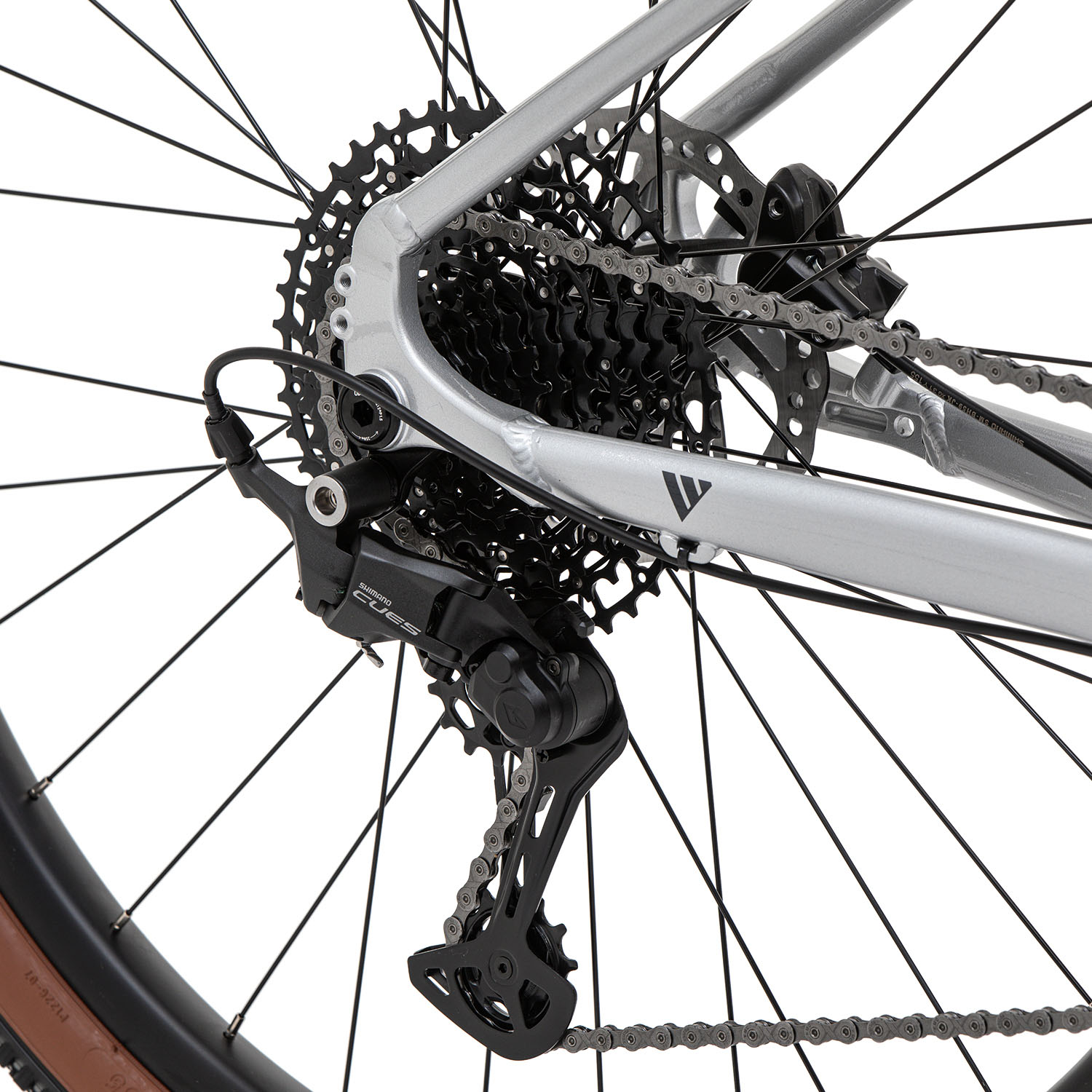 - 10-скоростная трансмиссия Shimano Cues создает плавное и четкое переключение при езде по бездорожью и в городских условиях. Задний переключатель имеет низкопрофильную конструкцию, цепь не задевает перо рамы в сложных условиях езды, работает без шума.