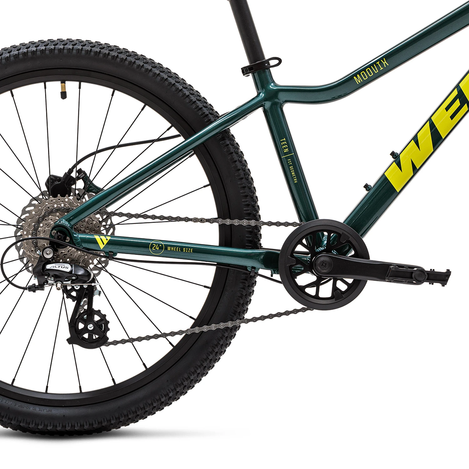 Подростковый велосипед Welt Moovix 2.0 24 HD - это топовая модель на 24 колесах в серии Moovix. Он подойдет как для катания по городу, велопрогулок в парках в выходные дни, так и для коротких выездов на мелкое бездорожье. Модель отличается дисковыми гидравлическими тормозами, которые эффективны даже в дождь. Благодаря специально разработанным под детскую руку тормозным ручкам ребенку будет удобно нажимать на них. На этот байк установлена трансмиссия уже более высокого класса. Это Shimano Altus на 8 скоростей. Она поможет юному райдеру легче подниматься на горки, а также быстрее катить по ровному асфальту.